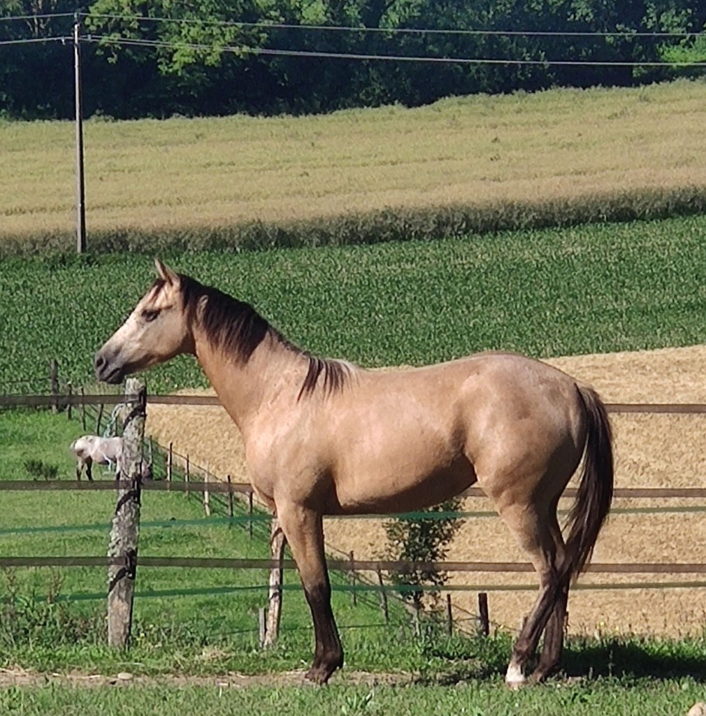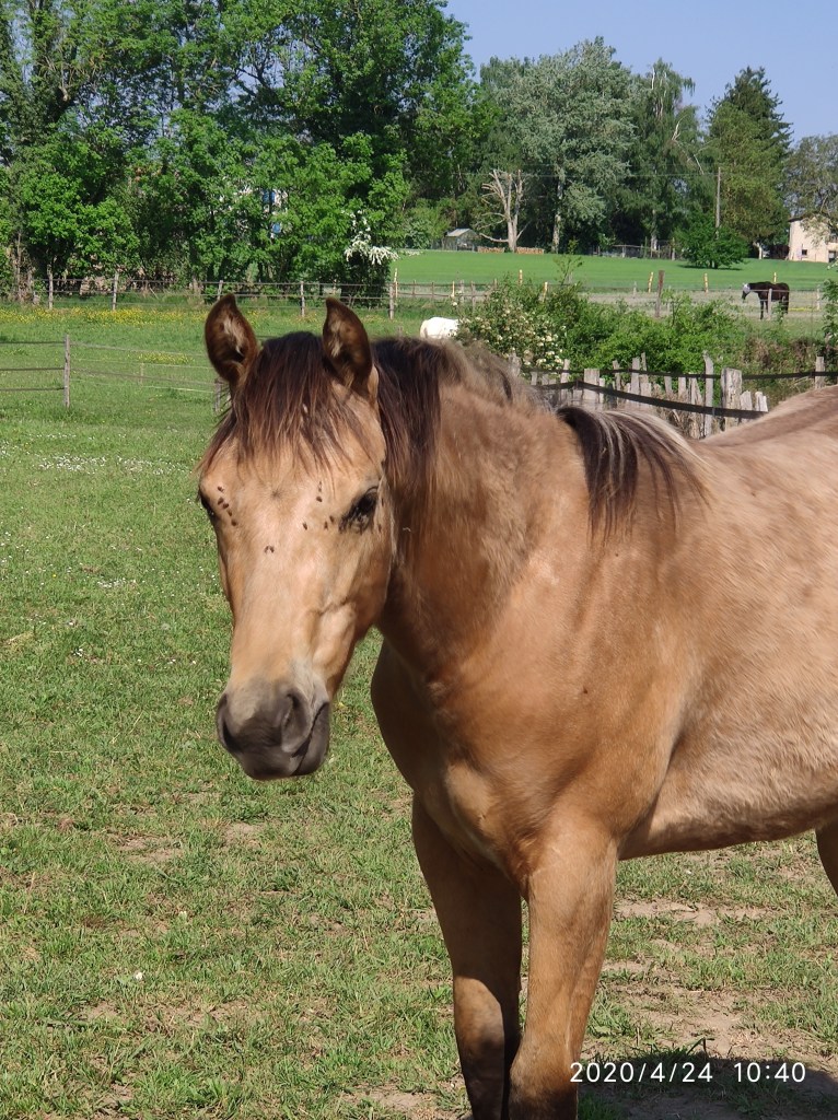 C’est une jument très docile, câline, calme avec un peu de sang. Lignée all-around.